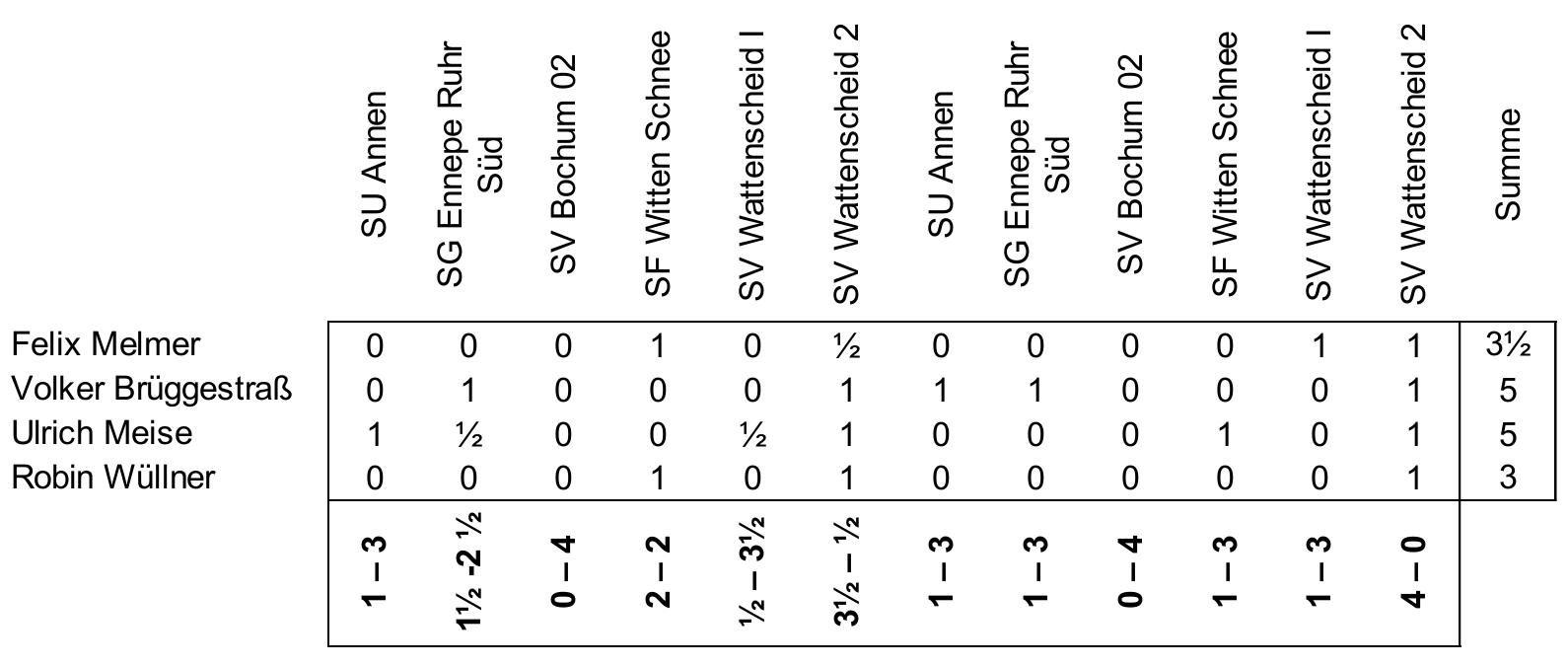 | 1778 | 1.5 : 6.5 | SC Gerthe-Werne 1 | 1866 | ||