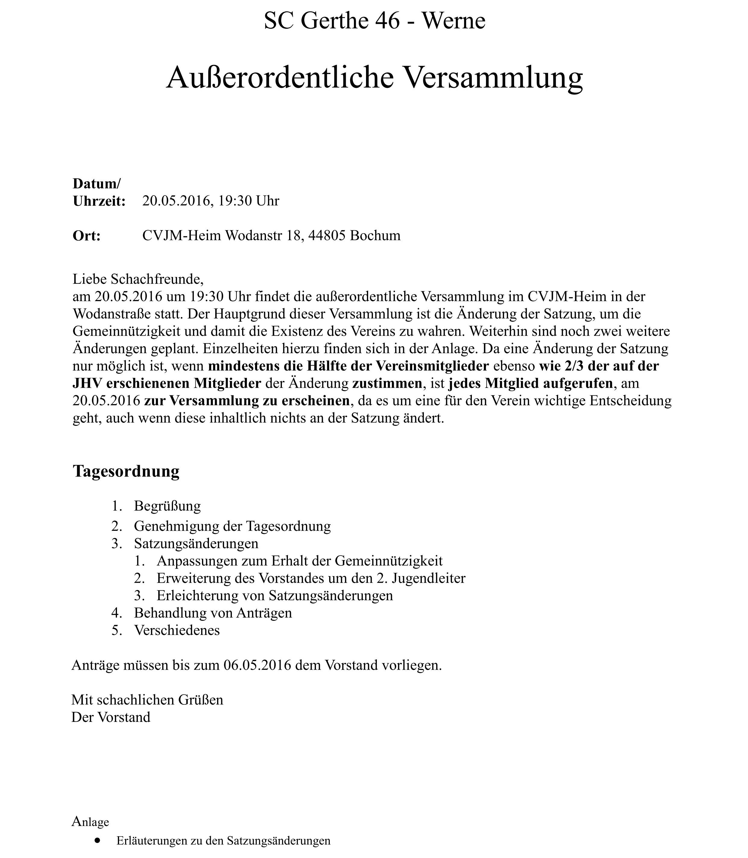 Einladung zur Außerordentlichen Mitgliederversammlung