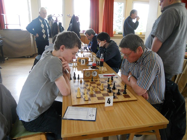 Oskar kam schnell in ein Turmendspiel mit einem Bauern weniger. Als dann der letzte Turm getauscht war, hatte Frank leichtes Spiel. Robin Wüllner gewann eine Figur und ließ sich das trotz erheblicher Gegenwehr nicht mehr nehmen! Jannik überspielte Julius regelrecht! Stephan verlor nach über 3 Stunden Kampf die Konzentration und bot überraschend trotz materieller Überlegenheit Remis an, was Wolfgang sofort annahm!