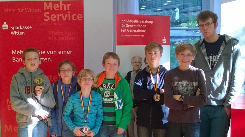 Dieses Turnier scheint unseren Jugendlichen und Kindern gut zu liegen. Beim diesjährigen Wittener Sparkassen Jugend Open haben wir wieder tolle Erfolge erzielen können! Yannis Kalle wurde in der U18 Zweiter (Gesamt: 10.), Mika Kowalski und Lorenz Brunnstein in der U14 Zweiter bzw. Dritter (11. und 12.). Dennik Finke konnte die U12 für sich entscheiden und den ersten Platz erringen (Gesamt 13.)! Julius Höring landete in der U14 auf dem undankbaren 4. Platz (Gesamt 14.). Eine besonders gute Leistung zeigte auch Melina Biermann in der U8! Sie wurde Gesamt-Sechzehnte und aufgrund fehlender 0,5 Buchholzpunkte (nur) Zweite in ihrer Altersklasse. Dabei ließ sie viele ältere und starke Kinder hinter sich. Alle genannten Kinder konnten 5 Punkte aus 7 Partien erreichen! Jannik Biermann musste sich leider mit 4 Punkten begnügen, was den 5. Platz in der U12 (Gesamt 28.) bedeutete. Insgesamt nahmen 81 Kinder teil.