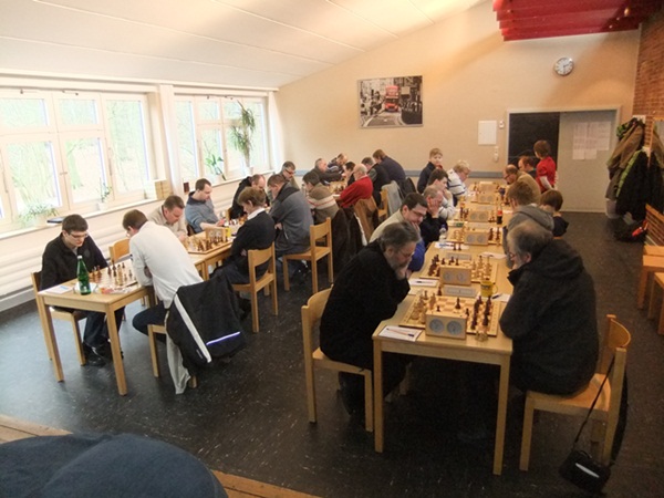 Von Jürgens Partie habe ich nicht viel mitbekommen. Sein Gegner gab bereits im dritten Zug das Läuferpaar ab, um Jürgen einen Doppelbauern zu verschaffen. In der Folge konnte Jürgens Gegner dann aber nichts besonderes erreichen und stand nur minimal besser. Schließlich einigte man sich auf ein Unentschieden.